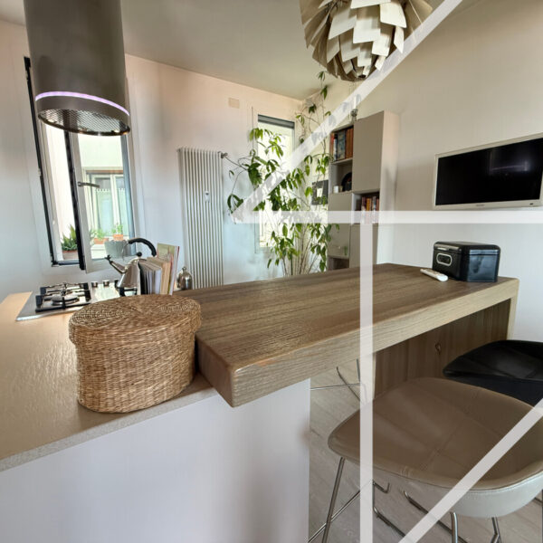 A completare la zona giorno, troviamo anche una veranda con vista suggestiva sulla città e una comoda zona lavanderia a scomparsa che aggiunge praticità senza sacrificare lo stile.