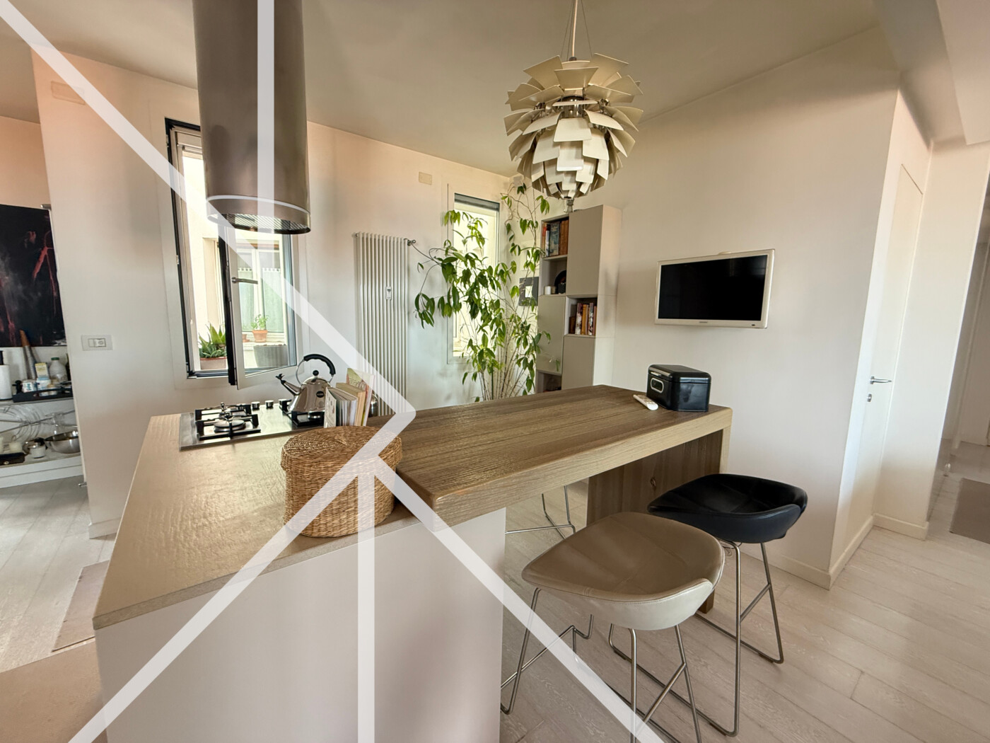 Proponiamo in vendita un raffinato semiattico situato al sesto e penultimo piano di un palazzo signorile con doppia scala costruito nel 1961 e recentemente riqualificato grazie agli interventi del Superbonus 110%.