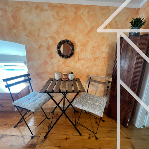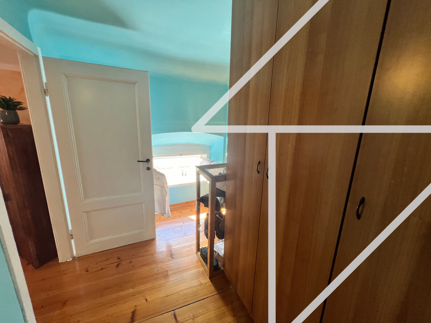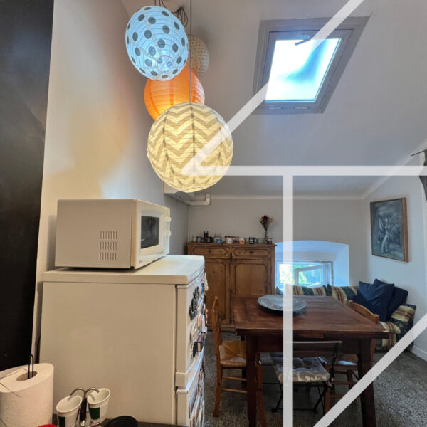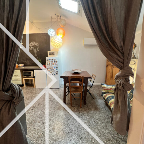 L’ingresso apre su una particolare cucina in stile eclettico con angolo relax, seguita da una comoda camera matrimoniale e un bagno. Completa la proprietà una pratica soffitta.